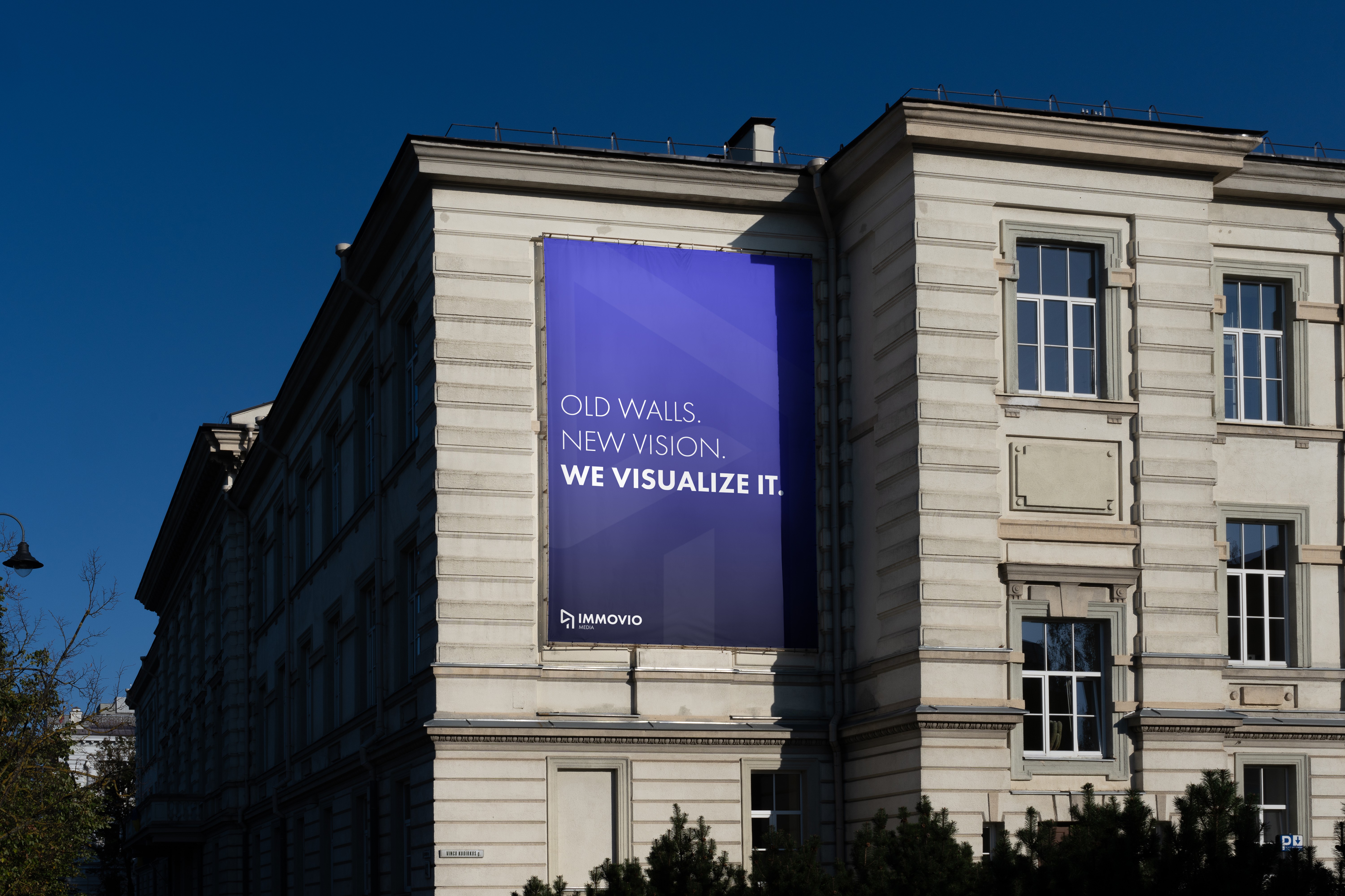 The Immovio identity was designed to feel at home anywhere — on screens or city walls.